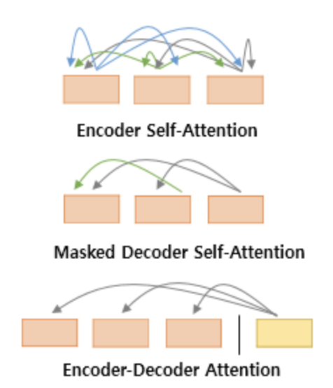 트랜스포머에서 사용되는 세 가지의 어텐션은 다음과 같다.