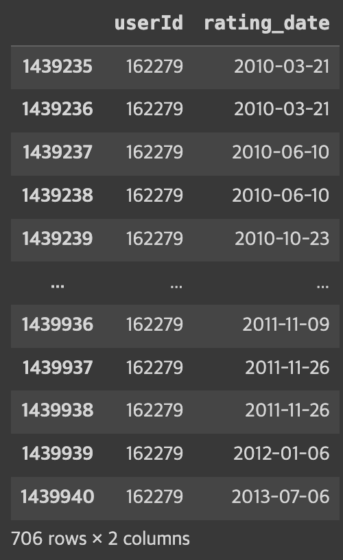 data[data['userId'] == 162279][['userId', 'rating_date']]