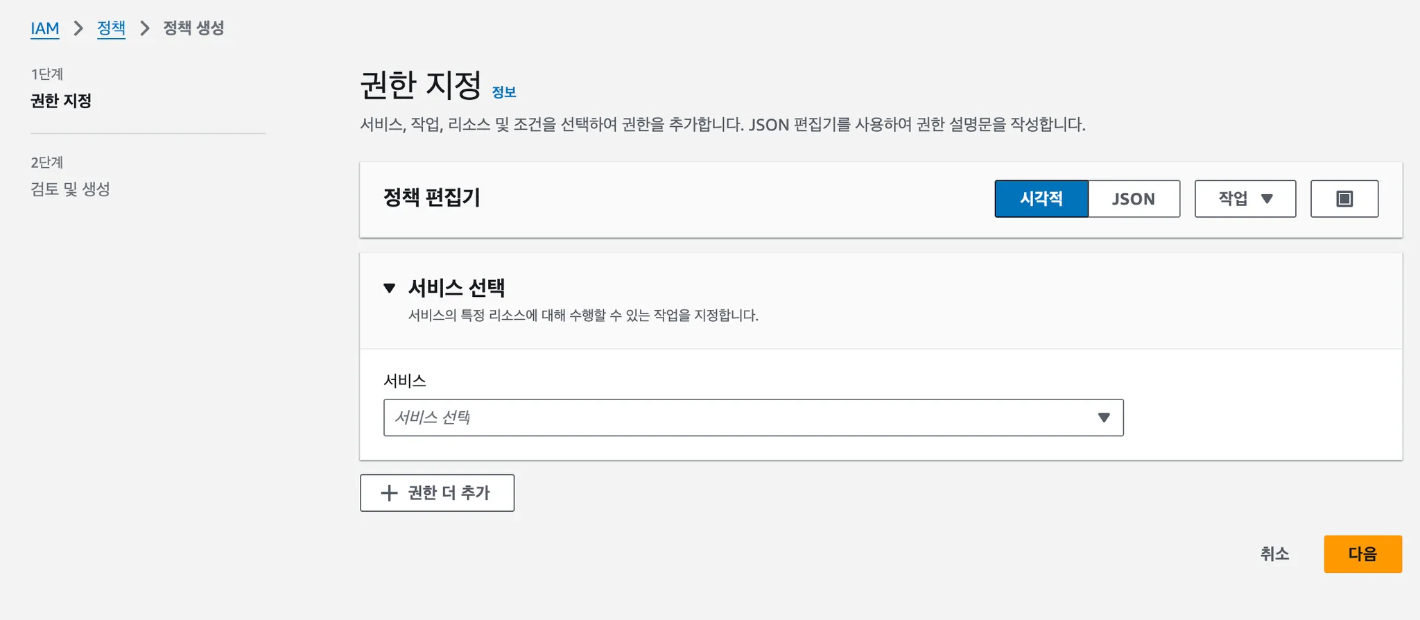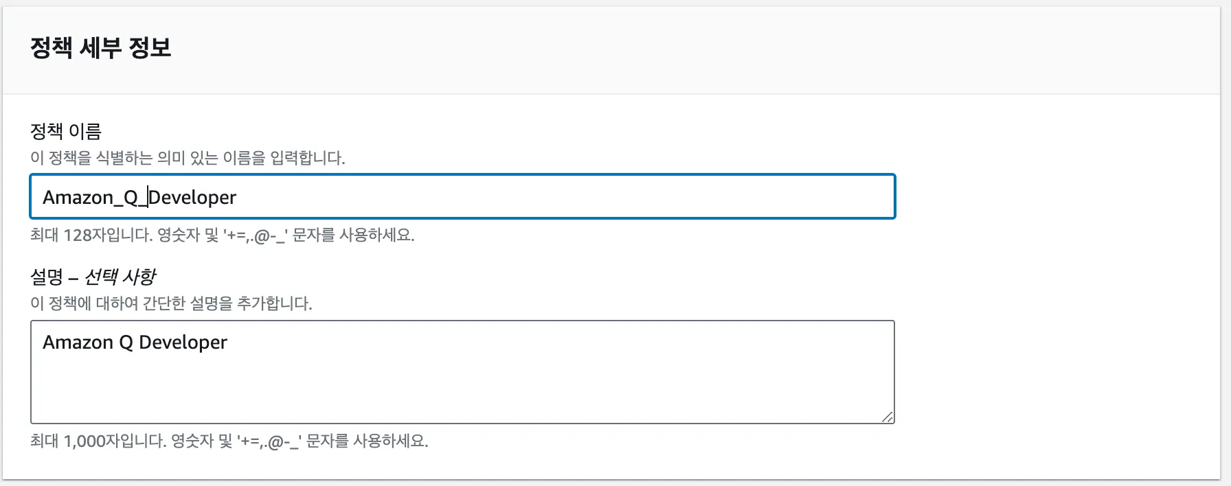 - 정책 이름과 설명을 작성한 후, (아래로 이어짐)