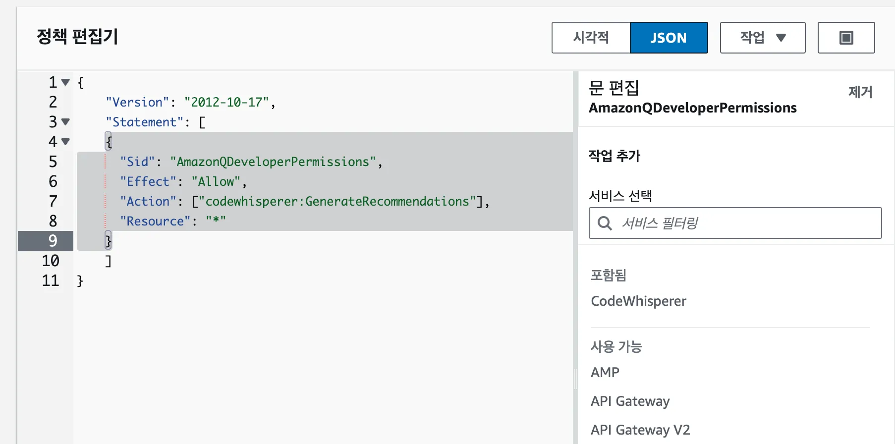 "Action": ["codewhisperer:GenerateRecommendations"],